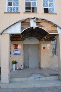 На входе в обком возвышается красный флаг с серпом и молотом. Само здание снаружи такое же, как мы его видели 2 года назад, только много выбитых окон, а главный вход забаррикадирован. Не так давно здание было обстреляно — погибло два коммуниста, одному из которых всего 19. На входе стоят их фотографии с черной лентой. Таблички с названием обкома, где встречается слово Украина или производное заклеены листами бумаги, как и по всему городу. А некоторые умельцы даже номера на машине изменил на ЛНР.