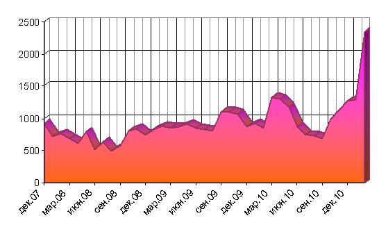 За исследуемый период на форуме вновь зарегистрировалось и уже начали принимать участие в дискуссиях 105 человек. Это значит, к активной работе на форуме еженедельно подключается в среднем 26 человек (график 2). Таким образом пополнение форума новыми участниками, хотя и имеет восходящую динамику, но не с удвоение показателей, как предыдущий график, что подтверждает значение форума не только в качестве дискуссионной площадки, но и в качестве информационного ресурса – рупора мнения и источника информации от членов и сторонников КПРФ, интересной гостям сайта.