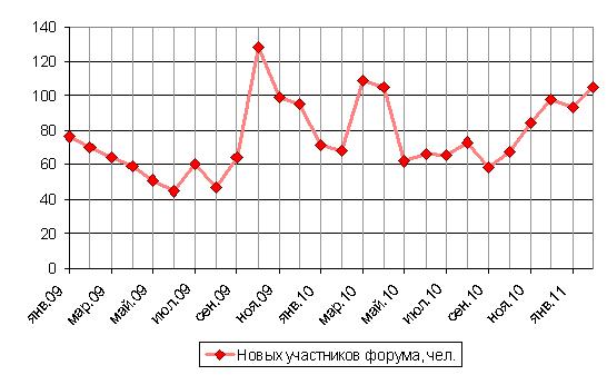 Пополнение форума новыми участниками, человек в месяц