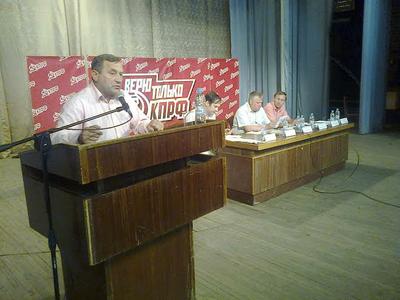 Очередная встреча-отчет депутатов КПРФ всех уровней, прошедшая 4 июня в Воронежском городском Дворце культуры (ДК Машиностроителей), была ознаменована тем, что в ней принял участие первый секретарь Луганского горкома Компартии, депутат Луганского облсовета, руководитель фракции «За Луганщину» М.М. Чаленко, прибывший для встреч с коммунистами и населением Воронежской области.