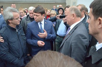 Автомобиль с Геннадием Зюгановым и Сергеем Левченко встречал директор МУП Центральный рынок Владислав Свердлов, несколько полицейских и группа из 15 подставных «избирателей», которые выкрикивали оскорбления. Вместе с подставными избирателями возле здания Центрального рынка появилась группа людей, которая пыталась развернуть флаги «Единой России». Несанкционированную акцию пресекли представители службы безопасности. Провокаторов доставили в отдел полиции, где они рассказали, что получили по пять тысяч рублей за участие в данном мероприятии.
