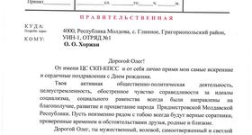 Твоя активная общественно-политическая деятельность, целеустремленность, обостренное чувство справедливости за идеалы социализма, социального равенства всегда были направлены на благополучие, развитие и процветание народа Приднестровской Молдавской Республики. Пусть неизменно рядом с тобою всегда будут верные соратники, проверенные временем и обстоятельствами друзья, родные и близкие.