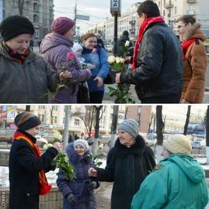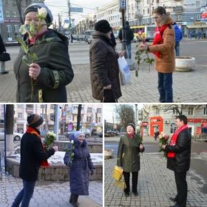 В преддверии Международного женского дня 8 марта тульские коммунисты вышли на улицы города-героя Тулы, чтобы поздравить женщин с предстоящим праздником и подарить им цветы.