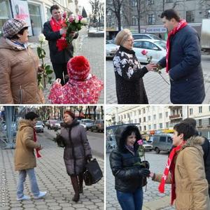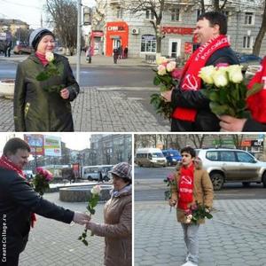 В предпраздничный день дарить женщинам цветы на улицы города-героя вышли тульские коммунисты.