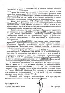 Но будем объективны: буквально через день после январских погромов - 23.01.2019 – прокуратурой Пролетарского района г. Тулы было внесено представление начальнику главного управления администрации города Тулы по Пролетарскому округу г-ну Шестакову. По результатам рассмотрения представления 2 лица привлечены к дисциплинарной ответственности. Правда, не уточняется, в чём именно заключалась эта ответственность. Их уволили? Вряд ли. Лишили премии? Верится с трудом? Погрозили пальчиком? А вот это – скорее всего.