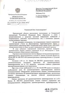 В конце января мною было направлено обращение Генеральному прокурору РФ с требованием разобраться и привлечь к ответственности чиновников, которые устроили погром на микрорынках Пролетарского района Тулы, разгоняя бабушек за «несанкционированную торговлю».