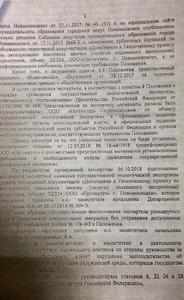 Так, в извещении о проведении общественных слушаний, опубликованных в средствах массовой информации, отсутствовали сведения, позволяющие общественным организациям и населению в полном объеме ознакомиться с планируемой деятельностью (название, цели и месторасположение, сроки проведения оценки воздействия на окружающую среду, орган, ответственный за организацию общественного обсуждения). Кроме того, протокол проведения общественных слушаний от 28.12.2017 г. не был подписан представителями граждан и общественных организаций. В связи с тем, что органом местного самоуправления (организатором публичных слушаний) были нарушены требования действующего законодательства, прокурором внесено представление в Собрание депутатов муниципального образования г. Новомосковск немедленно устранить нарушения закона.