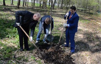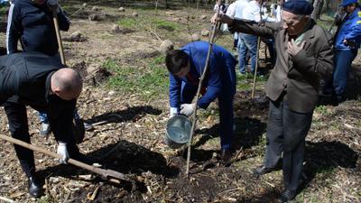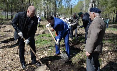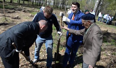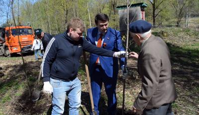 Олег Лебедев вместе с ветеранами Великой Отечественной войны посадили аллею в Центральном парке города-героя Тулы