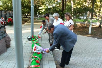 Ольга Алимова и воронежские коммунисты возложили цветы к мемориалу погибших, защищавших нашу Родину во время Великой Отечественной войны.