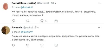 Правда, в чём-то согласиться с утверждением Дворковича, конечно, можно. «Ну, где-то, он конечно прав... Если в России, они и есть, то это – разве что, только иногда – проездом», – написали мне в комментариях в соцсетях. «Да ну, да что вы, какие олигархи, воры есть, аферисты есть, рецидивисты есть, а олигархов нет, боже упаси».