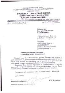 С таким антисоциальным «переворотом» местного масштаба жители села Песь согласиться не могли и обратились к лидеру КПРФ Г.А. Зюганову. Депутатом были направлены запросы Губернатору Новгородской области А.С. Никитину и прокурору региона А.В. Гуришеву. И вот итог.