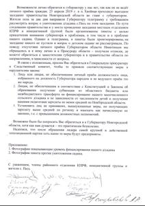 Но вот прокурор области А.В. Гуришев имеет другое мнение. Так в ответе руководителя надзорного органа говорится, что принятые органом местного самоуправления решения, регламентирующие процедуры реорганизации образовательных учреждений, не соответствуют требованиям действующего законодательства в части определения формы непосредственного осуществления населением местного самоуправления и участия его в вопросе реорганизации образовательного учреждения. Решение заведующей детсадом о закрытии дежурной группы противоречит Закону «Об образовании в Российской Федерации». Также выявлены нарушения Трудового кодекса в отношении обслуживающего персонала дошкольного образовательного учреждения.