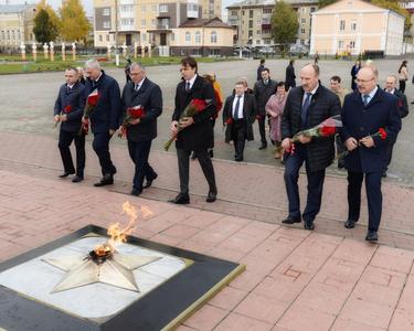После встречи с руководством Ливен врио губернатора возложил цветы к Вечному огню на площади Победы.