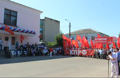 По окончании шествия в парке пионеров у мемориала «Вечного огня» состоялся общегородской митинг. Перед собравшимися выступил депутат Государственной Думы Федерального Собрания, первый секретарь обкома КПРФ В.Н. Иконников. Обращаясь с поздравлением В.Н. Иконников поблагодарил жителей Мценска за то, что они сохранили верность нашей великой Победе, идеалам социализма и справедливости, продолжают высоко и гордо нести знамя русского патриотизма, который интернационален по духу.