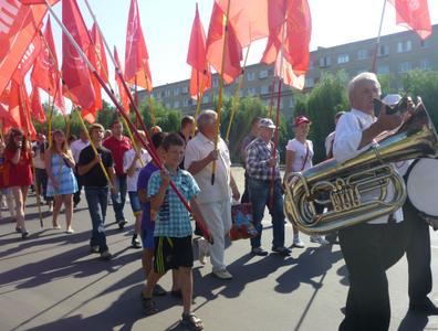 Показательным был факт встречи «красной колонны» с группой людей, собранных под флагами партии «Единой России» возле здания администрации города. Лица единороссов были мрачными, утомленными, не в пример радостным, светящимся взглядам коммунистов.