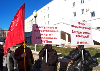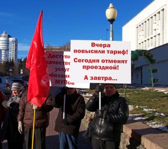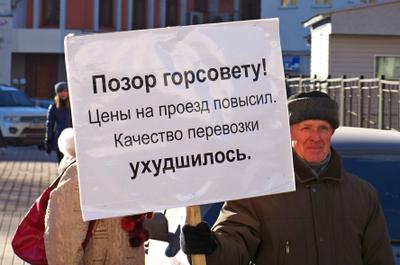 Пикет прошёл накануне заседания горсовета, на котором планировалось отменить безлимитный проездной билет на автобус, повысить тарифы на льготные проездные билеты на 100 рублей, установить лимит в 60 поездок в месяц.