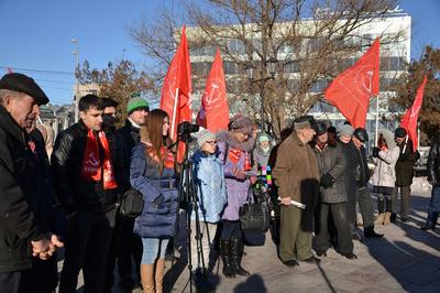 На митинге выступили секретари обкома Халит Аитов и Илья Репин, первый секретарь Ленинского РК КПРФ Виталий Горохов, зам. председателя правления общественной организации «Дети войны» Тамара Кожевникова, активисты ЛКСМ Рамис Ахмед, Роман Султанов и Екатерина Петрова, представитель РКРП Нариман Кабдулов.