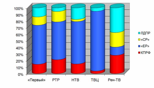 | Телеканал | КПРФ | «ЕР» | «СР» | ЛДПР | |