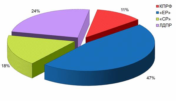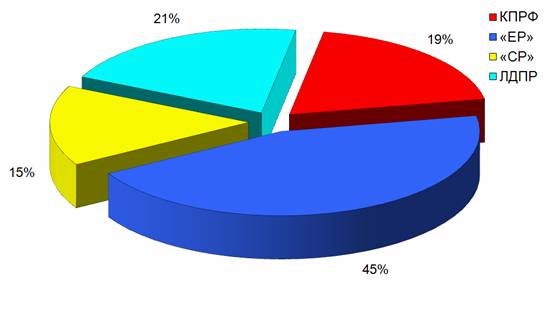 «Единой России» было предоставлено 45% телеэфира, «СР» 15%, ЛДПР 21%. КПРФ предоставили 19% (или 3 мин 1 сек), что в 2 раза меньше, чем «Единой России» и на 14 секунд меньше, чем ЛДПР. (График 1)