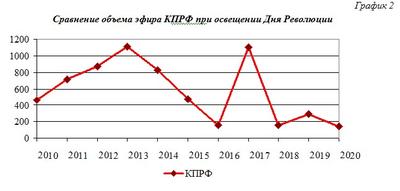 Сравнение объема эфира КПРФ при освещении Дня Революции