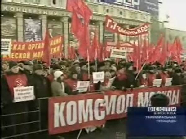 01.02.2009 19:19:27 НТВ # Сегодня. Итоговая программа Акции в поддержку антикризисных мер | ![]() Не согласные с антикризисной программой властей коммунисты митинговали на Триумфальной площади, они требовали снизить тарифы ЖКХ, остановить рост цен на продукты и товары первой необходимости, а также улучшить социальные условия. |