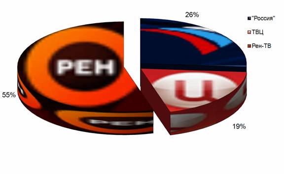 Прямая речь Г. А. Зюганова присутствовала при этом только на трёх каналах: «России», ТВЦ и Рен-ТВ. (График 3)
