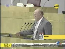 На телеканале «Россия» речь Г. А. Зюганова была представлена в двух из трёх сюжетах и заняла в общей сложности 38 секунд. Помимо лидера Компартии также 7 секунд эфирного времени было отдано вопросу Харитонова. Справедливороссы и ЛДПРовцы получили на канале «Россия» по 45 и 59 секунд прямой речи соответственно. Данные телесюжеты осветили заседание в Госдуме в крайне мягкой форме, особенно по сравнению с телеканалом Рен-ТВ, о котором речь пойдёт ниже.
