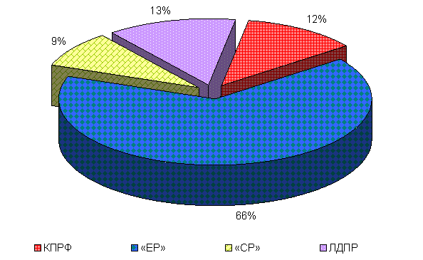 Что касается синхрона (прямой речи) партийцев, то его структура аналогична: единороссам было предоставлено 66% суммарного времени, либерал-демократам – 13%, справороссам – 9%. Коммунистам досталось 1 минута 9 секунд, или 12%, что в пять раз меньше чем представителям «ЕР» и на 7 секунд меньше, чем ЛДПР (График 2).