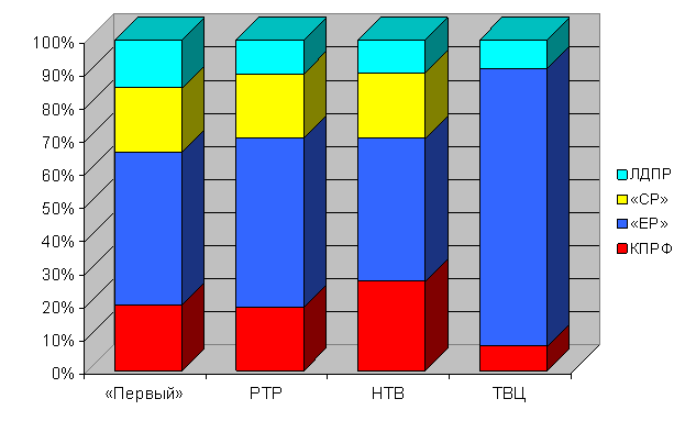 Либерал-демократы заняли максимум эфира телеканалов НТВ и «Первого» (30 и 25%).