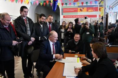 18 марта, в единый день голосования, Председатель ЦК КПРФ Г.А. Зюганов проголосовал на своем избирательном участке в Москве, в Доме творчества на Миуссах.