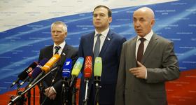 24 мая, предваряя пленарное заседание в Госдуме, перед журналистами выступили депутаты Госдумы фракции КПРФ первый заместитель председателя комитета ГД по природным ресурсам, собственности и земельным отношениям Ю.В. Афонин, член комитета ГД по экономической политике, промышленности, инновационному развитию и предпринимательству С.М. Пантелеев, первый заместитель председателя комитета ГД по государственному строительству и законодательству Ю.П. Синельщиков.