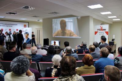 В 17:00 началась прямая линия с Павлом Грудининым по видеосвязи. Павел Николаевич поприветствовал и поблагодарил участников за проявленное неравнодушие и активность. Вопросы из зала раздавалась на самые разные волнующие темы: Обманутые дольщики, проблемы малого бизнеса, садоводства, тяжелая ситуация в экологии и сельском хозяйстве.