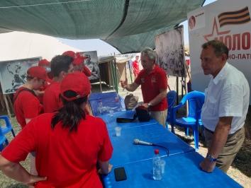 По традиции курсанты и гости лагеря развернули гигантскую копию Знамени Победы. Участие в торжественной церемонии открытия лагеря приняли депутаты шестого созыва Госдумы - кандидат в депутаты Государственной Думы VIII созыва Александр Тарнаев и советник Председателя ЦК КПРФ Владимир Родин, первый секретарь КРО КПРФ, председатель Комитета Государственного Совета Республики Крым по социальной политике и делам ветеранов Сергей Богатыренко, член Президиума Всероссийского Женского Союза «Надежда России» Юлия Михайлова, председатель Евпаторийского отдела Союза десантников Крыма Василий Петухов и другие.