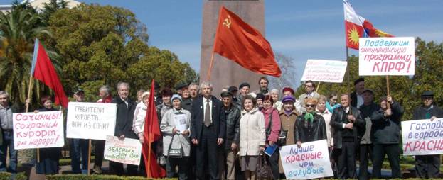 Всё это наглядно проявляется в городе Сочи. Процветавший в годы Советской власти знаменитый курорт задыхается теперь под гнётом капитала так называемых инвесторов, криминальных структур и коррупционных схем, порождённых смычкой с ними власти, что особенно явно проявляется в области земельно-имущественных отношений. В результате трудящиеся сочинцы стали фактически изгоями в своём родном городе.