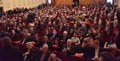 Собравшиеся в зале минутой молчания почтили память скоропостижно скончавшегося делегата встречи С.М. Захарова.