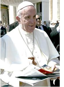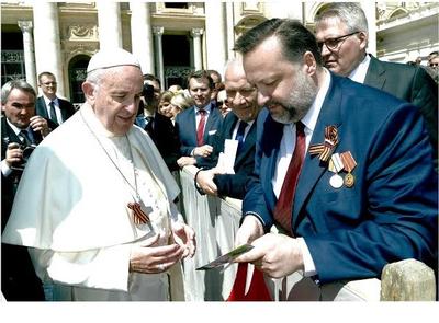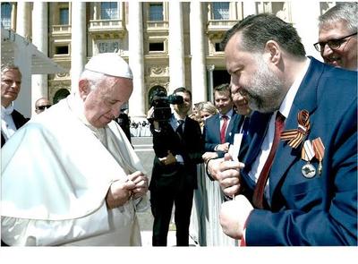 Как сообщали российские СМИ, депутат ГД РФ, секретарь ЦК КПРФ Павел Дорохин поздравил папу Римского Франциска с Днем Победы и подарил понтифику георгиевскую ленточку накануне нашего Великого Праздника 5 мая 2016 г.
