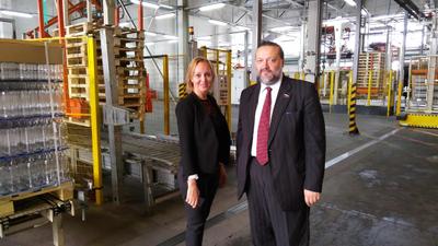 Он встретился с коллективом и директором предприятия Еленой Острягиной. Стекольный завод «Стеклотех» - единственное высокотехнологичное предприятие по производству стеклотары в УРФО. Производственная мощность завода - 300 млн. бутылок в год.