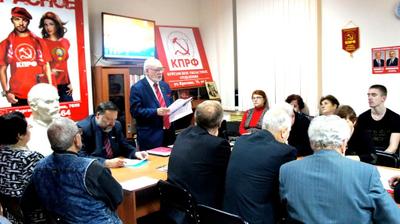 В частности, важнейшей задачей является подготовка к XVII съезду КПРФ, который состоится в мае 2017 года, а также к 100-летию Великого Октября. Ряд предложений по этому поводу уже высказал В.А.Кислицын в своем выступлении на Пленуме ЦК КПРФ. Партийные активисты просмотрели видеозапись этого выступления.