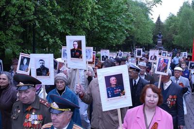 Ветеран Великой Отечественной войны Иван Петрович Тютерев рассказал о том, какой была минувшая война для солдата. Участники митинга возложили цветы к памятникам на Аллее Героев, апотом с огромным Знаменем Победы (10х4 метра) прошли от памятника Жукову до музея-диорамы.