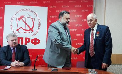 В заключение Павел Дорохин от имени ЦК КПРФ за заслуги перед партией и в связи с 70-летием вручил уважаемому региональному политику, депутату областного заксобрания Ивану Петровичу Евгенову орден «Партийная доблесть».