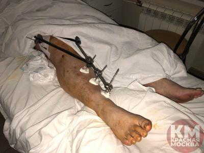 Пострадавший получил открытый перелом большеберцовой кости со смещением. Сейчас он находится в Институте скорой помощи им. Склифосовского, где его будут оперировать. Врачи констатируют, что на восстановление понадобится не менее трёх месяцев.