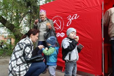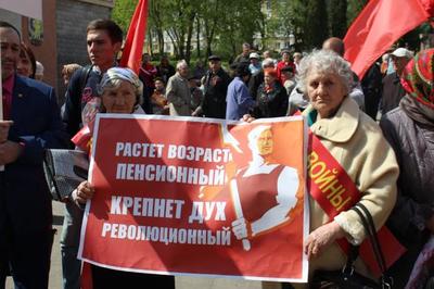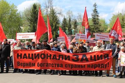 В первомайской демонстрации КПРФ нашлось места всем. Вслед за колонной КПРФ шли активисты Левого Фронта, «Дети войны», Российского объединённого трудового фронта и д.р. Даже участники «монстрации» с флагом Ямайки и под лозунгом «Отобрать и не делить» приняли участие в акции КПРФ. По словам «монстрантов» - это лозунг политический. Они считают, что настало время отобрать у олигархов нажитые преступной приватизацией нефтяные и газовые компании и вернуть их в собственность государства, что в принципе перекликается с требованиями коммунистов о национализации.