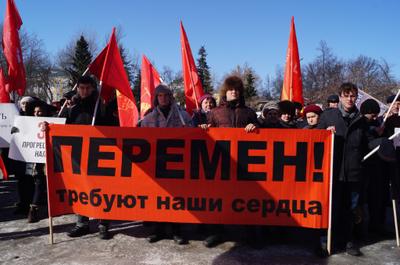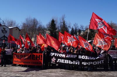 Площадь у бывшего кинотеатра «Родина» пестрила красными знамёнами и плакатами с портретом кандидата в Президенты Павла Грудининина. Члены и сторонники КПРФ, комсомольцы, активисты «Левого фронта», движения «Дети войны» и других общественных организаций развернули яркие растяжки: «Перемен требуют наши сердца!», «Лучше совхоз имени Ленина, чем кооператив «Озеро», «Другой мир возможен», «Наш Президент - Грудинин». Люди держали в руках плакаты с лозунгами: «Нет платному образованию», «За национализацию», «Против олигархов - друзей Президента», «За прогрессивный налог». На импровизированной сцене были выставлены кубы с изображением народного кандидата Грудинина и его программой «20 шагов».