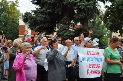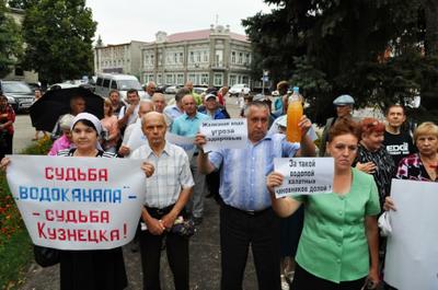 Очередное заявление властей, что на горизонте замаячил новый инвестор, - неместный и с сомнительной репутацией, заставила народ выйти на площадь. Казалось бы новость сама по себе – неплохая. Вроде бы администрация Кузнецка прорабатывает проект соглашения о передаче объектов водоснабжения и водоотведения новому концессионеру. Условия вполне приемлемые – строительство двух станций обезжелезивания воды на двух водозаборах №8 и «Южный» за счёт его средств в 2016-2017 гг. По сути, всё это должно улучшить качество питьевой воды, которая сегодня не соответствует никаким санитарным нормам, и облегчить жизнь горожан. Но люди уже никому не верят. Подобные обещания они слышат как минимум два раза в год, начиная с 2011-го. Но ситуация остаётся прежней – из водопроводных кранов кузнечан продолжает течь ржавая жижа.