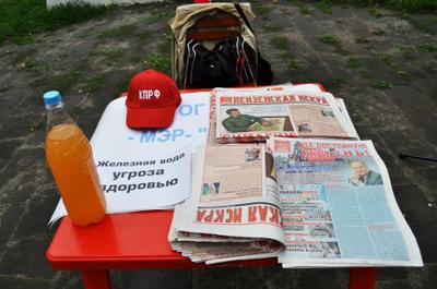 Перед началом митинга народ беседует с приезжими корреспондентами. «Проблемы с водоснабжением – это, когда вода идёт с перебоями, или горячую надолго отключают. У нас же в Кузнецке – настоящая беда», - один из жителей трясёт перед фотокамерой бутылкой с жидкостью ржаво-оранжевого цвета. На проверку та оказывается обычной водопроводной водой, которой кузнечане вынуждены ежедневно мыться, стирать одежду, мыть посуду. Для приготовления еды используют другую воду: кто побогаче – из магазина, люди победнее возят домой ключевую. «Ладно, цвет, - продолжают возмущаться собравшиеся на митинг. – В ней же железа выше нормы в несколько раз»!