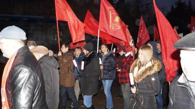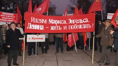 Пензенские коммунисты 7 ноября по-боевому отметили 97-ю годовщину Великой Октябрьской Социалистической Революции ярким шествием по улице Московской и массовым митингом протеста на Советской площади.