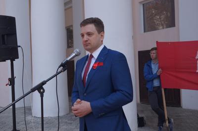 От имени городского комитета КПРФ Дмитрий Филяев поздравил собравшихся с Днём международной солидарности трудящихся.