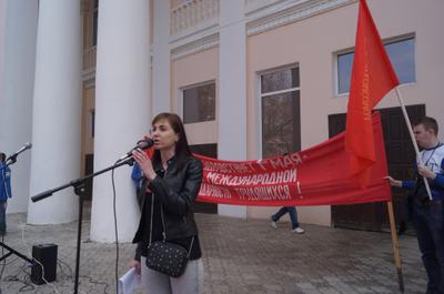 Митинг начался в 11.00 у бывшего кинотеатра «Родина» на Советской площади. Мероприятие открыла секретарь горкома Юлиана Котова, которая рассказала о значении праздника для всех трудящихся и том, как современная власть попирает права трудового населения.