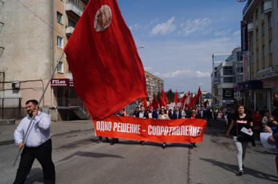 Ровно в 10.30 коммунистическая колонна выстроена. Люди готовы маршировать по главной улице города – Московской. Впереди с красным знаменем коммунист Сердобского района Алексей Никишин. За ним комсомольцы с растяжкой «Одно решение – сопротивление». Возглавили колонну руководители областного комитета. За ними сотни людей под красными флагами. Красивые, умные, интересные лица. С живыми и искренними эмоциями.