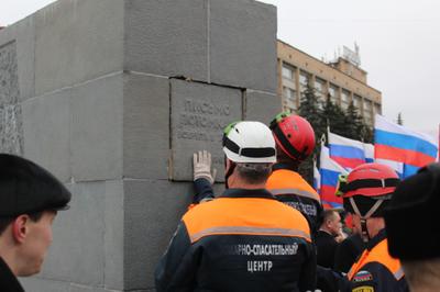 После возложения цветов, колонны демонстрантов двинулись в сторону «Ростка», где состоялась церемония вскрытия капсул с посланиями потомкам, заложенных в стелу Героям в 1967 и в 1977 годах.